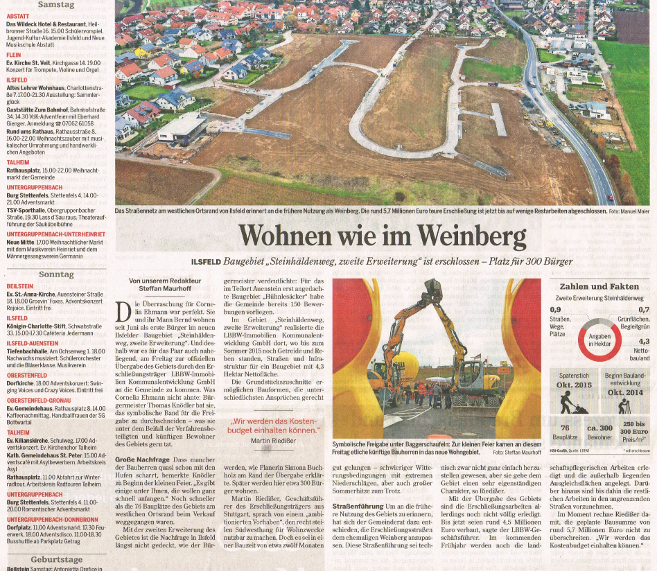 Einweihung Baugebiet in Ilsfeld: Wohnen wie im Weinberg